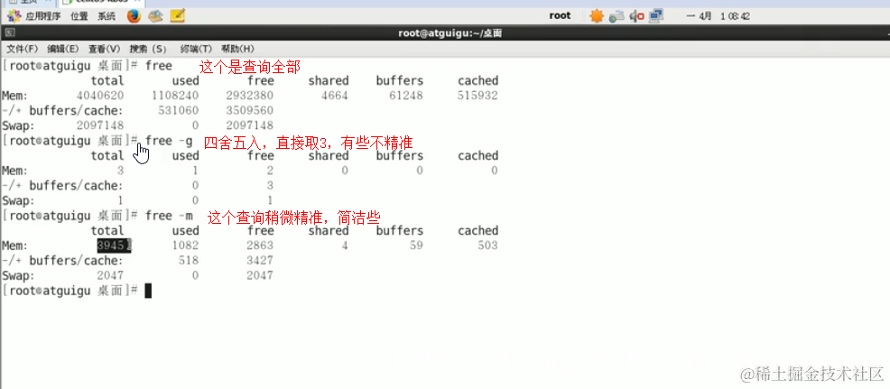 查看内存:free
