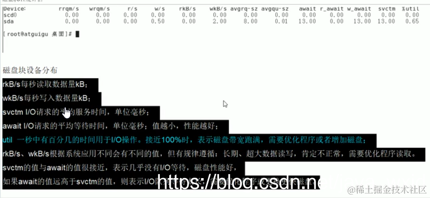 查看磁盘IO:lostat -xdk 间隔秒数 次数
