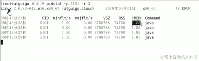 pidstat -p 进程号 -r 采样间隔秒数