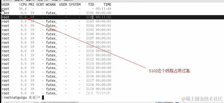 使用top命令找出cpu占比最高的