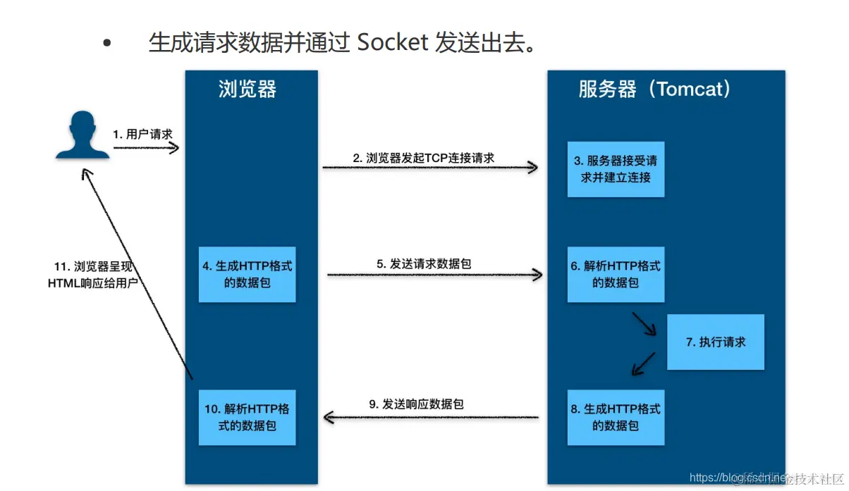 - 生成请求数据并通过Socket发送出去。