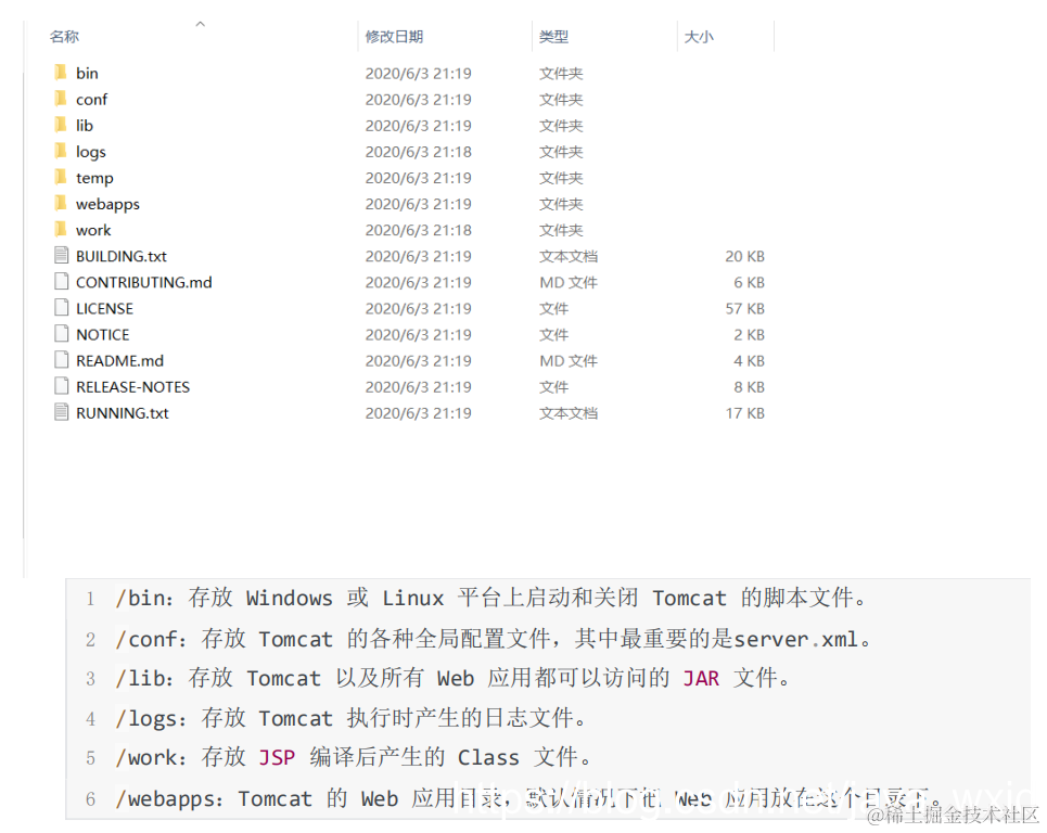 Tomcat:第二章:Tomcat日志文件分析 我是廖志伟 2021-04-28 310 阅读1分钟 Tomcat下载地址:tomcat.apache.org/download-80… tomcat源码下载: tomcat目录结构: 打开 Tomcat 的日志目录,也就是 Tomcat 安装目录下的 logs 目录。