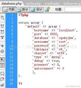phpcm修改数据库配制文件 cplvfx 2021-04-28 118 阅读1分钟 网站根目录\caches\configs\database.php \ 'hostname' => 'localhost', (主机地址) 'port' => 8092,(端口号) 'database' => 'cgnhsjkm',(数据库名) 'username' => 'root',(用户名) 'password' => 'root',(密码)\