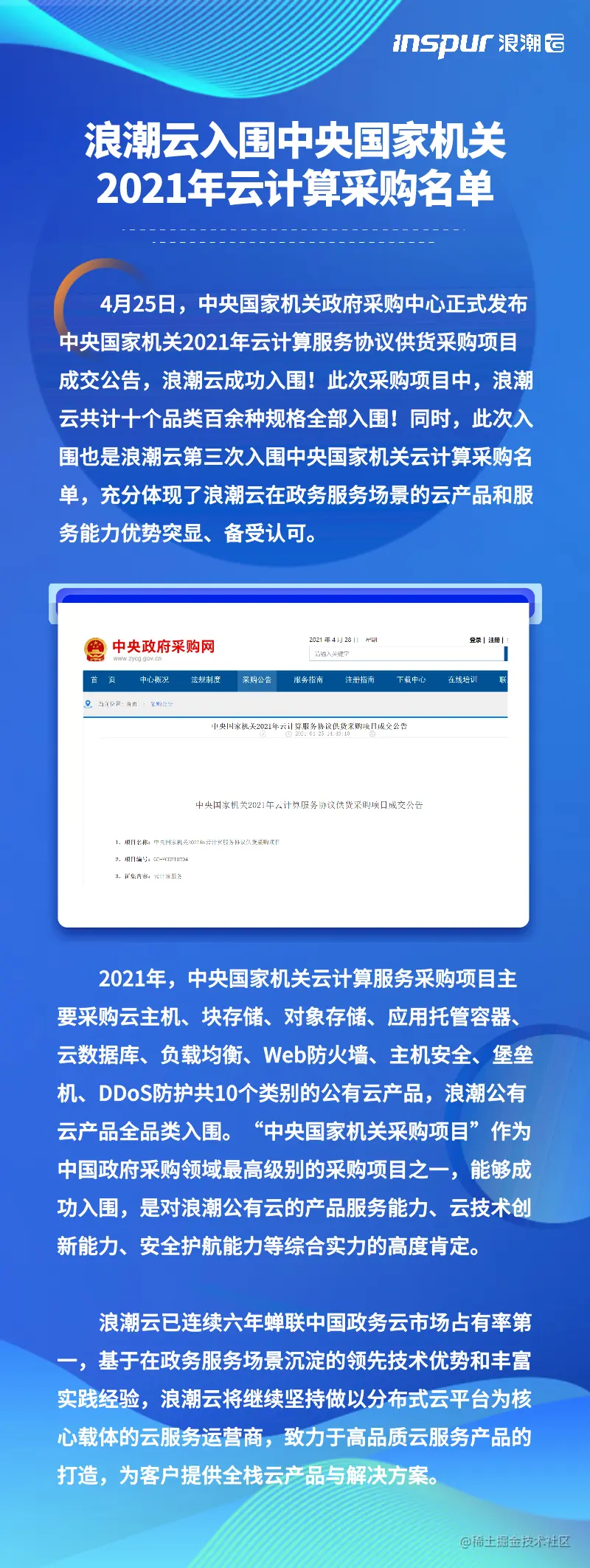 浪潮云再次入围央采2021年云计算服务采购名单
