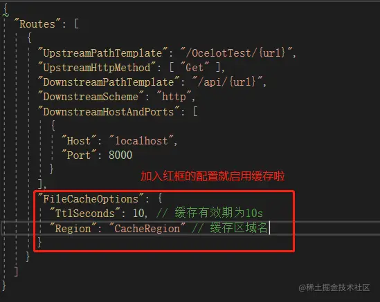 其实只要增加下面红框部分的配置,就可以使用缓存了,如下: