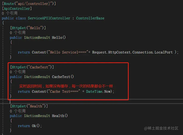 限流配置实现,这里就用ServiceAPI1中CacheTest接口做演示