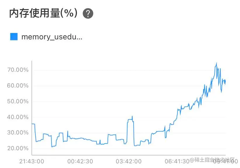 所以有时候敬敬风水还是很有必要的,有点扯远了哈,这篇我们来看看程序的内存暴涨如何去排查,为了让你更有兴趣,来一张运维发的内存监控图。
