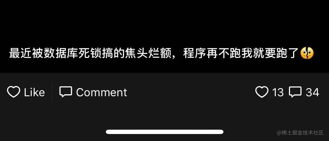 犹记得那些天老板天天找我们几个人开会,大概老板是在传导甲方给过来的压力,人倒霉就是这样,你说 CPU 爆高可怕吧,我硬是给摁下去了,好了,Memory 又爆高了,尼玛我又给摁下去了,接着数据库死锁又来了,你能体会到这种压力吗?🤣 就像我在朋友圈发的那样,程序再不跑我就要跑了。