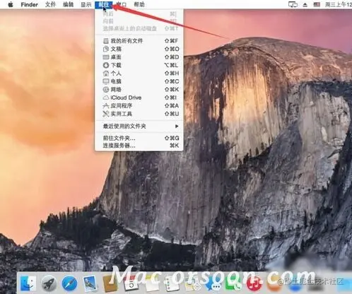 2、苹果MAC系统,点击桌面。打开顶部菜单 “前往”。