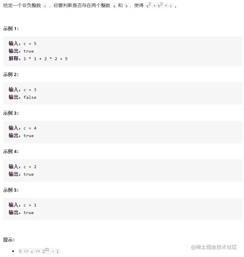 bool judgeSquareSum(int c) {