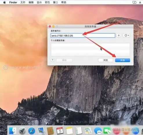 4、输入要共享的地址,格式为“smb://192.168.0.1” 其中的ip地址为你要访问的电脑ip。