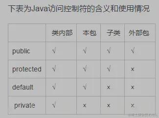 protected:自身、子类及同一个包中类可以访问