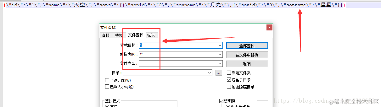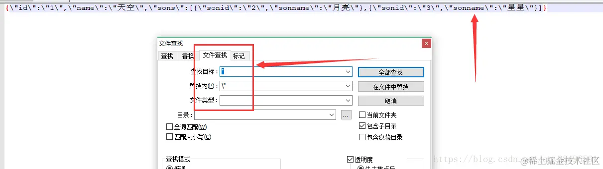 压缩好的字符串在记事本中将所有"替换成\" (如图),即可放入定义json字符串代码中