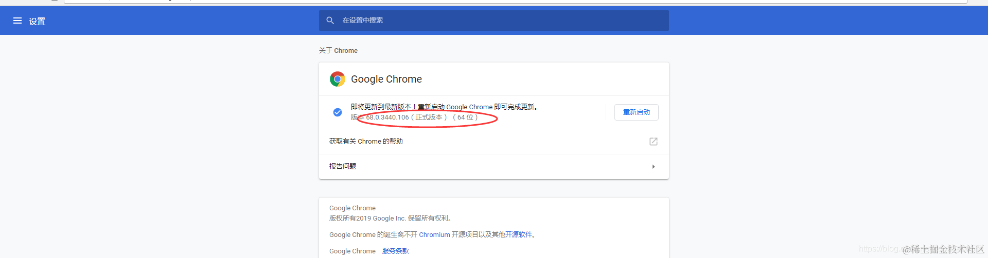 先找到浏览器的版本,我的为68.0.3440.106