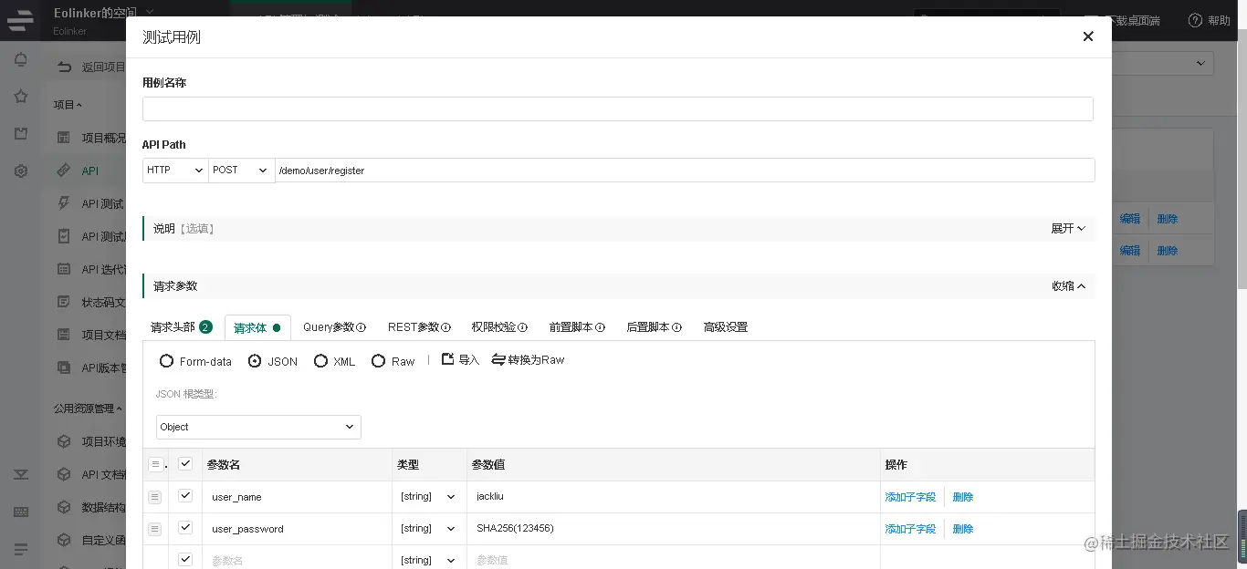 不管是一开始的接口文档、接口用例还是到后续的接口测试和返回报告,都需要通过工具来实现,之前很多人用的是国外的Postman,但是现在越来多的人因为各种原因选择国内的工具像Eolinker等。 下面演示一下Eolinker添加测试用例流程。