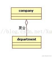 UML图中聚合使用一条带有虚心菱形的线来表示。如图: