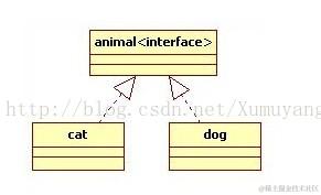 UML图中实现使用一条带有空心三角箭头的虚线指向接口。如图: