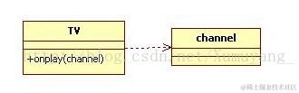 UML图中依赖使用一条右箭头的虚线指向被依赖的类。如图: