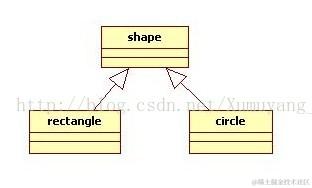 UML图中泛化使用一条带有空心三角箭头的实现指向基类。如图: