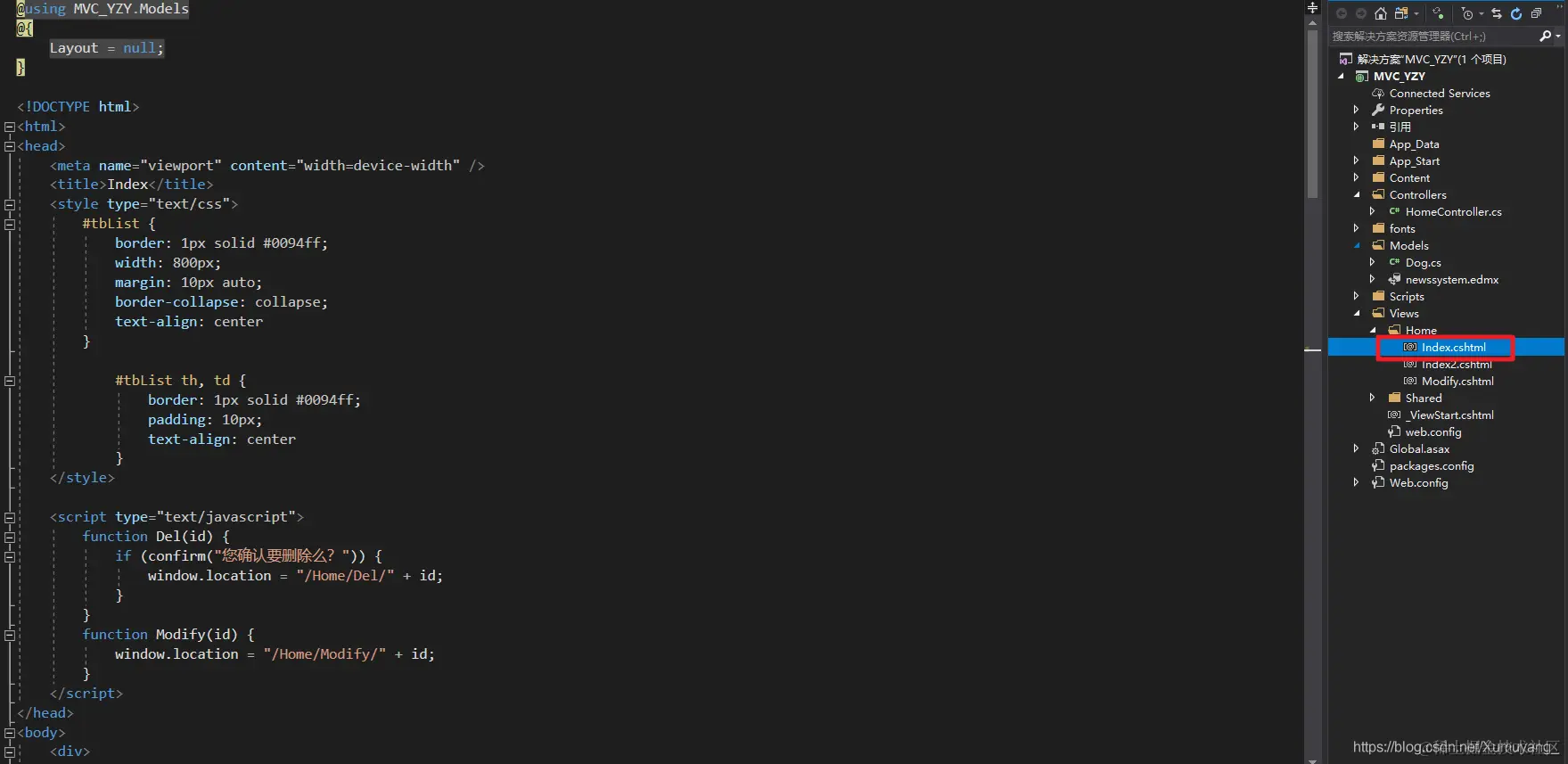 二、然后是Index.cshtml页面
