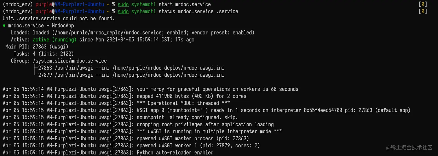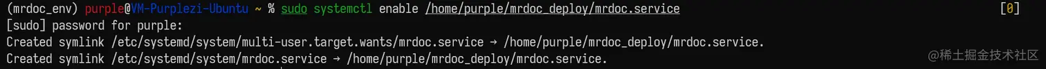 (mrdoc_env) purple@VM-Purplezi-Ubuntu ~ % sudo systemctl start mrdoc.service