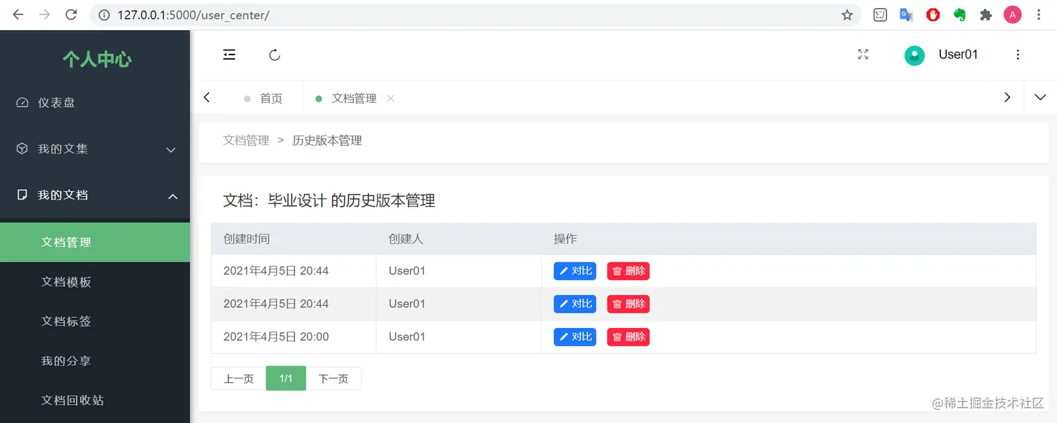 小白:“我现在也看得懂了,在 个人中心 → 我的文档 → 文档管理 中可以统一管理创建的所有文档,还可以看到 历史版本管理 信息呢,方便了用户进行对比,也方便了团队协作的管理。”