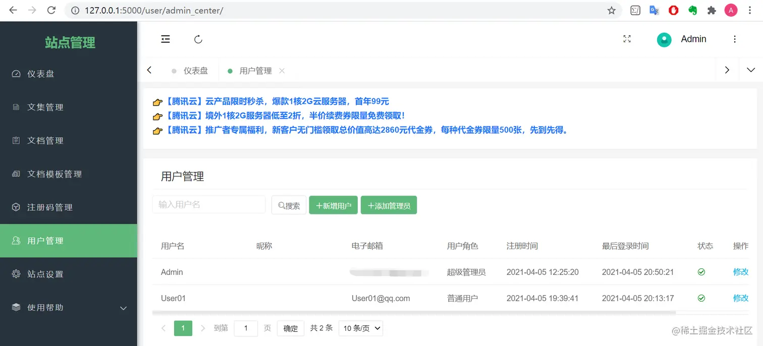 2.4 后台管理【管理员】