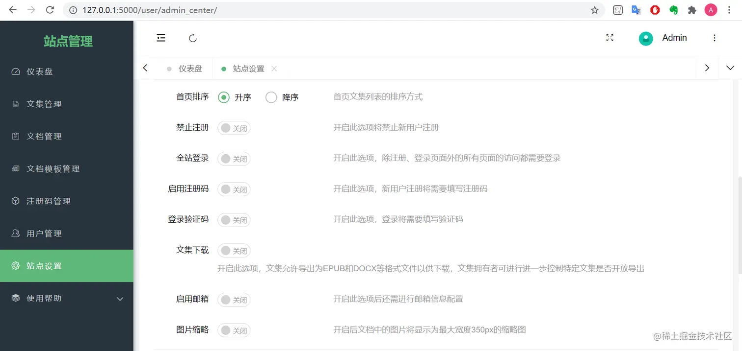 HelloGitHub:“大 boss 的权限必然是很高的,一切都收之眼底,包括用户的文集、文档、文档模块,还可以进行用户管理和站点设置。”