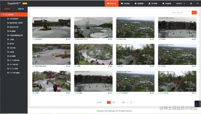 EasyNVR+EasyNVS视频监控系统打破过去“闭路电视系统”的模拟方式结构,实现了一体化、网络化、数字化、集成化和远程视频监控,很大程度上提升了安全管理信息化管理水平,加强了园林展馆的防护工作,进一步提高了工作效率。