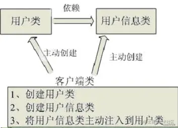 用图例说明一下,传统程序设计如图,都是主动去创建相关对象然后再组合起来: