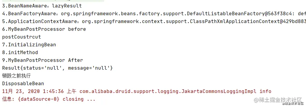 <bean id="lazyResult" class="com.lagou.edu.pojo.Result" init-method="initMethodTest"></bean>