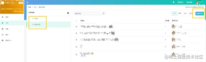 第三步:添加内容。点击右上角的“创建文章”即可新建一篇帮助文档。在栏目列表中添加新栏目,可以整理好你的帮助文档,梳理出一个清晰明确的文档框架。