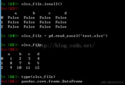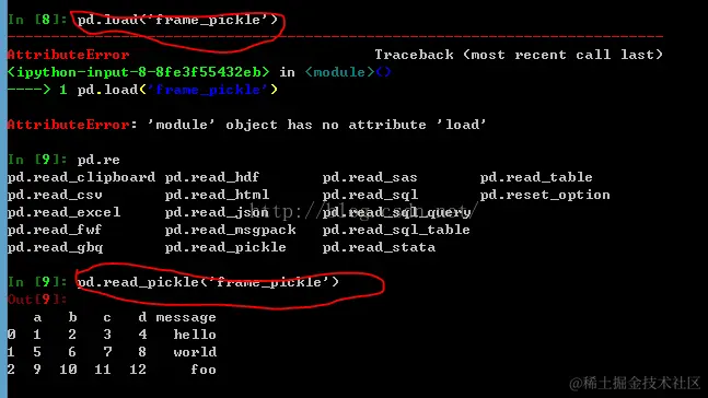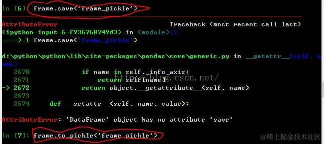 pandas读写二进制文件 寒衣 2021-04-30 709 阅读1分钟 python3数据加载存储与文件2 1、 python内置了以pickle序列化的方式存取二进制文件。pandas也提供了方便的方法通过pickle方式加载和存储二进制文件。 原先版本的save和load方法在新版本中都被取代,现在可以通过to_pickle和read_pickle方法将二进制文件以pickle方式存储和读取。 \ \ 2、读取excel文件,使用pd.read_excel可以读入excel文件并返回DataFrame对象,不过提前要安装xlrd和openpyxl包 \