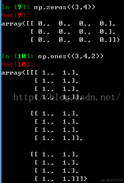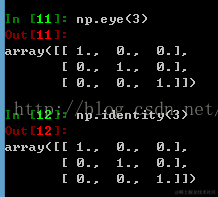 3、使用zeros()、ones()等创建全0或全1数组或eye()、identity()创建单位矩阵