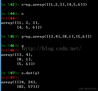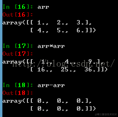 2、数组间的算术运算,相等大小的数组间运算会应用到元素级