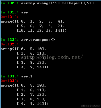 numpy数组转置可以通过两个方法实现,一个是transpose()方法,另一个是T属性