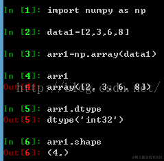 1、使用numpy的array方法将序列型对象转换为ndarray