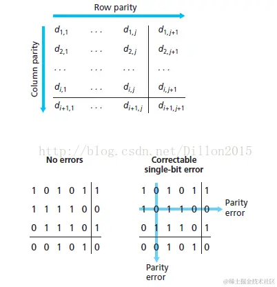 对于单个比特错误二维奇偶校验不仅能够检测出而且能够纠正,对于校验码本身的错误也能纠正,而且对于分组中两个比特错误的任何组合都能够检测出但不能纠正。