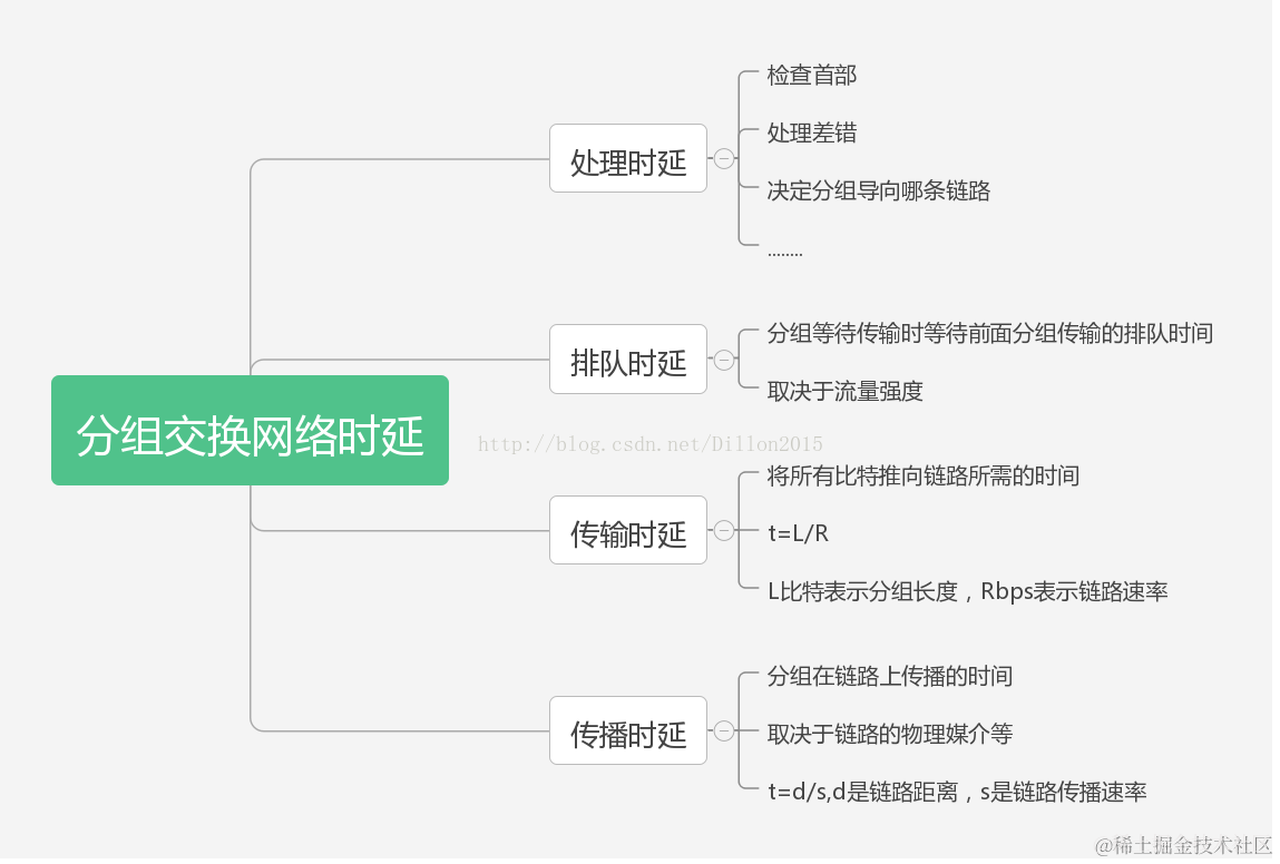 分组交换网络时延、丢包、吞吐量 寒衣 2021-04-30 95 阅读1分钟 1、时延是指分组从一台设备到另一台设备所经历的时间。 \ 2、丢包 当分组到达一台路由器时,如果前面有已经到达的分组正在传输,在该分组会进入缓冲区排队,当分组到达速率大于传输速率,缓冲区就会被逐渐填满,当缓冲区填满后,后面到达的分组就会被丢弃。 3、吞吐量 吞吐量是接受数据的速率,假设文件大小为F,接收时间是T,则平均吞吐量为F/T