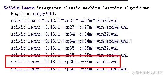 到上面网址下载相应版本scikit-learn,同样方法安装
