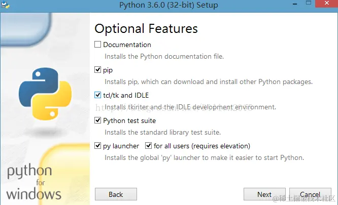 我在官网下载的是32位版本python,注意在以后安装各种安装包时一定要注意与之匹配否则会报错