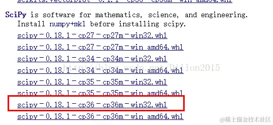 到官网查看之后发现windows上不能直接通过pip安装scipy