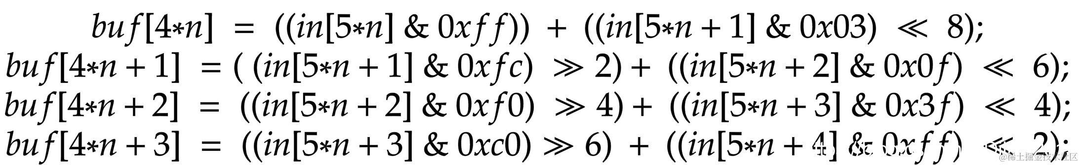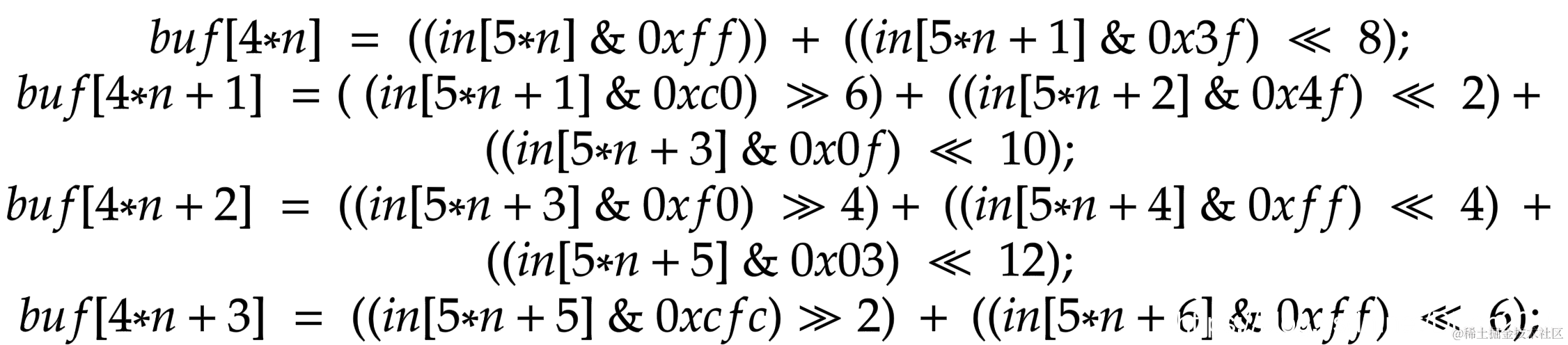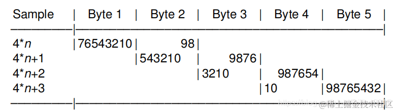 第2个像素:低2位为第2个字节高2位,第3-10位在第3字节,高4位在第4个字节的低4位。
