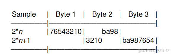 第1个像素:低8位为第1个字节,高4位在第2个字节的低4位。
