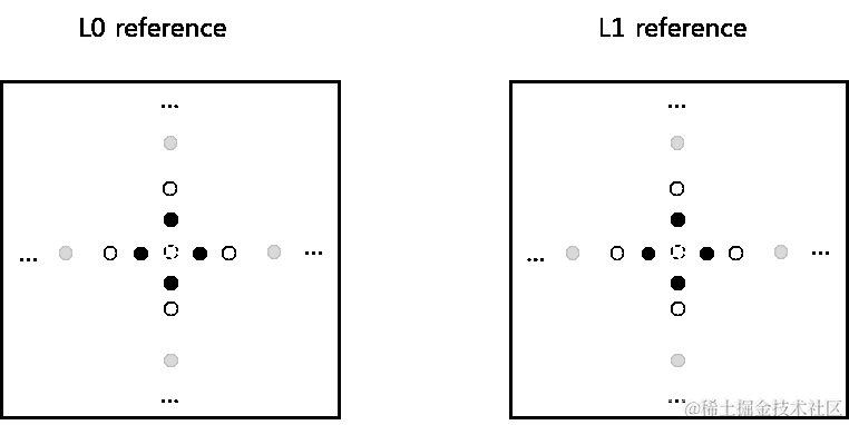 提取出初始候选项后以候选项在参考帧中指向的位置为起始点,以4个方向、8个步长分别形成不同的运动向量(MV)。一共2个候选MV,每个候选MV生成4x8=32个新的MV,所以2个候选MV一共生成64个新的MV。关于步长和方向定义如下: