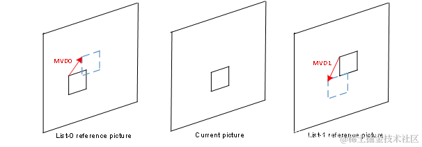 在解码端MVD1由MVD0的相反数生成,如下图所示。