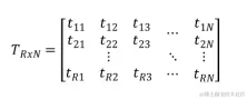 LFNST基于不可分离变换所以只需要一次矩阵乘法就可以完成变换操作。但是为了降低计算复杂度和变换系数的内存空间需要将不可分离变换矩阵进行缩减。缩减的不可分离变换(reduced non-separable transform,RST) 主要思想是将N维向量映射为另一个空间的R维向量,其中N/R (R<N)是缩减因子。这样一个NxN的矩阵经过RST处理后变为一个RxN的矩阵,如下所示。