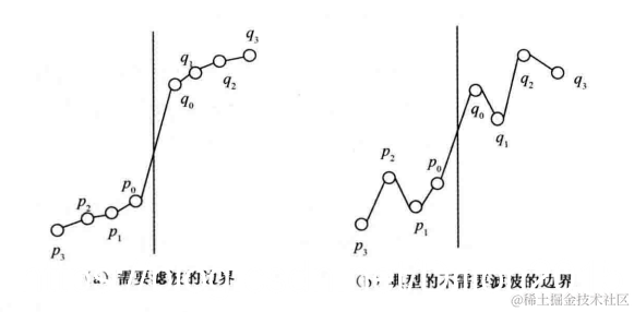 接着判断p(1,0)及q(1,0)是否需要修正。
