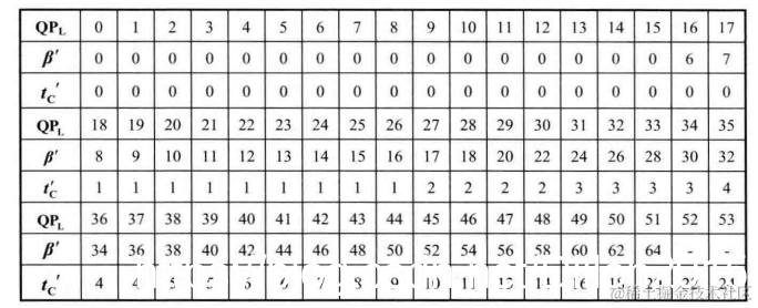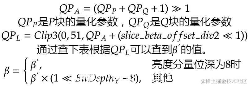 阈值beta为判决门限,其与边界两侧块的量化参数QP有关,由下面方法得出。