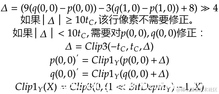 Int delta2 = Clip3(-tc2, tc2, (( ((m6+m4+1)>>1)- m5-delta)>>1));